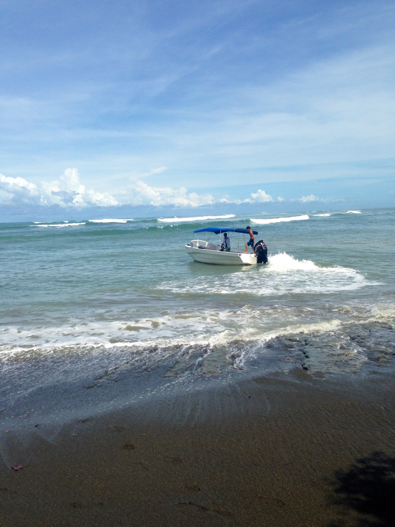 The only time I actually ever truly felt unsafe was on the three-hour boat ride in the Pacific Ocean, on our way back from Corcovado National Park. It was beautiful weather all day, but as we headed back around 4pm, a thunderstorm started approaching. What started out as calm, crystal waters with minor swells quickly turned into very dark skies, dark waters, and…slightly bigger swells. And by slightly bigger I mean fucking huge. Now I love me a boat ride, but when the captain stops the engine in open water, in a dinky little twelve foot bathtub toy (as seen in picture above), with thunder getting louder and lightening getting closer, and being thoroughly rocked by twenty-five foot swells, well. That’s when you start believin’ in Jesus.